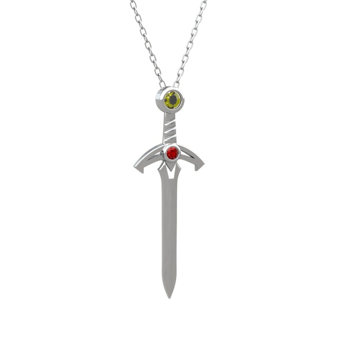 Peridot ve garnet 18 ayar beyaz altın kolye (40 cm beyaz altın rolo zincir)