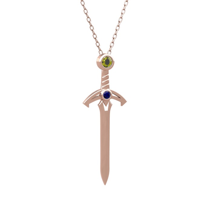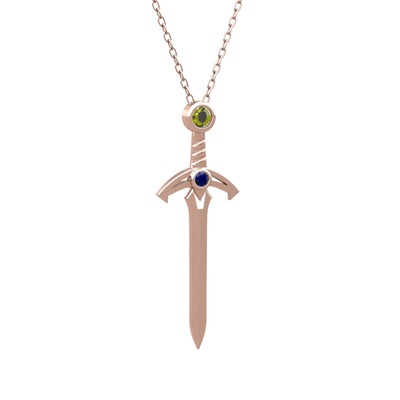 Peridot ve lab safir 14 ayar rose altın kolye (40 cm gümüş rolo zincir)