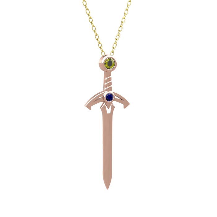 Peridot ve lab safir 18 ayar rose altın kolye (40 cm altın rolo zincir)