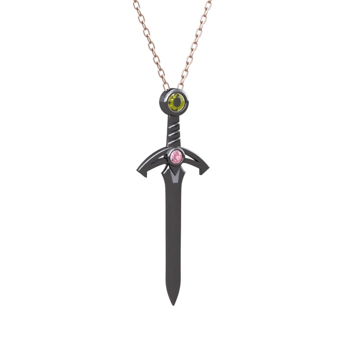Peridot ve pembe kuvars 925 ayar siyah rodyum kaplama gümüş kolye (40 cm rose altın rolo zincir)