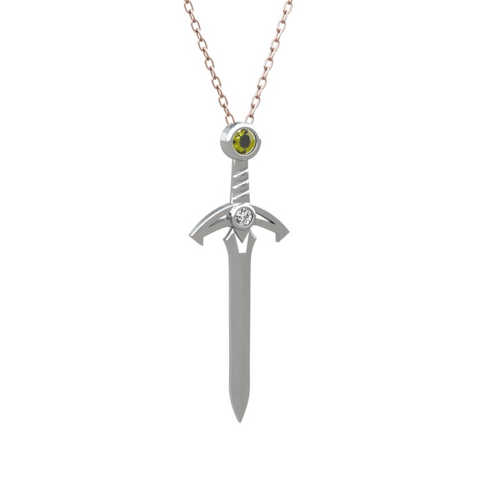 Peridot ve swarovski 18 ayar beyaz altın kolye (40 cm gümüş rolo zincir)