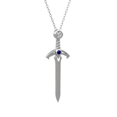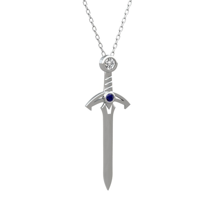 Pırlanta ve lab safir 8 ayar beyaz altın kolye (0.08 karat, 40 cm beyaz altın rolo zincir)