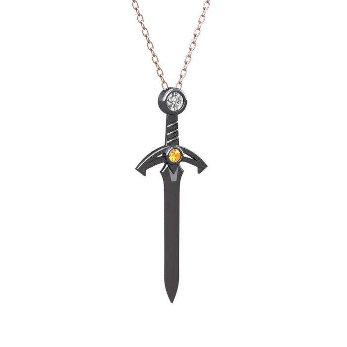 Pırlanta ve sitrin 925 ayar siyah rodyum kaplama gümüş kolye (0.08 karat, 40 cm rose altın rolo zincir)