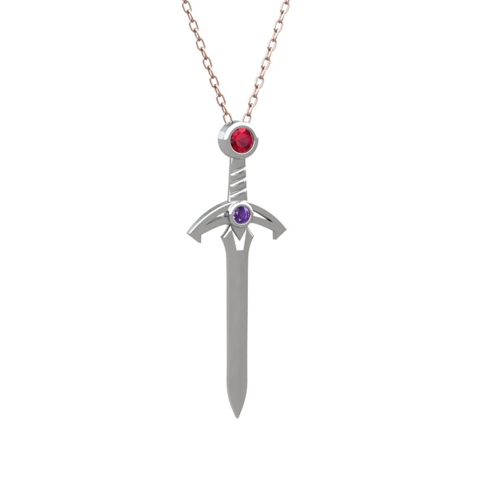 Rodolit garnet ve ametist 18 ayar beyaz altın kolye (40 cm rose altın rolo zincir)