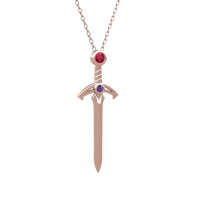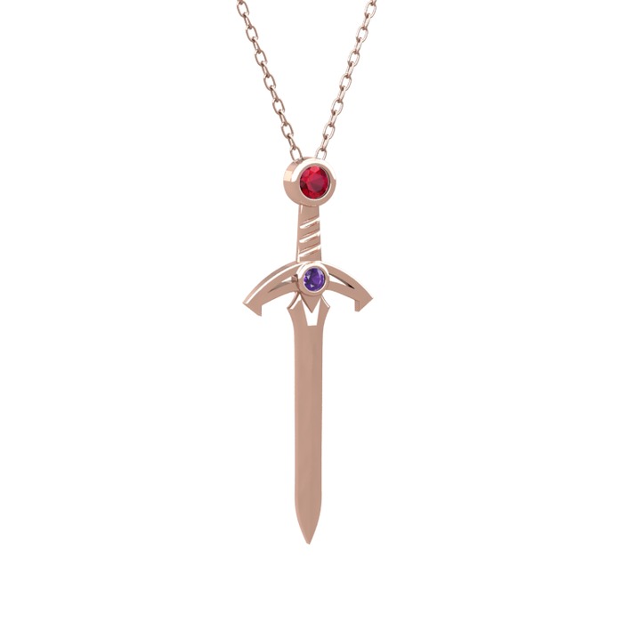 Rodolit garnet ve ametist 925 ayar rose altın kaplama gümüş kolye (40 cm gümüş rolo zincir)