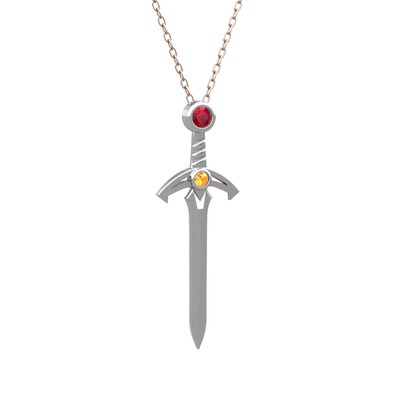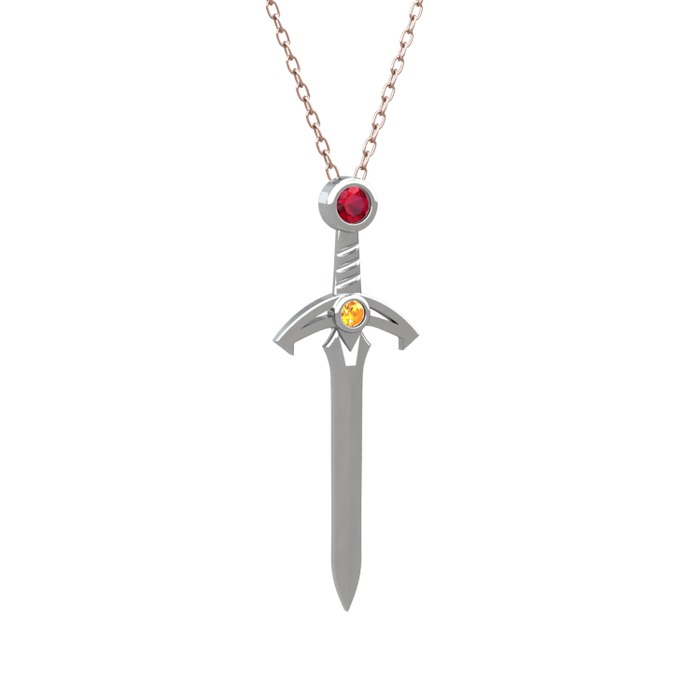 Rodolit garnet ve sitrin 14 ayar beyaz altın kolye (40 cm rose altın rolo zincir)