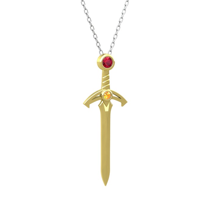 Rodolit garnet ve sitrin 925 ayar altın kaplama gümüş kolye (40 cm beyaz altın rolo zincir)