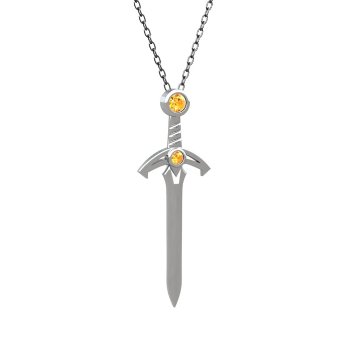 Sitrin 8 ayar beyaz altın kolye (40 cm gümüş rolo zincir)