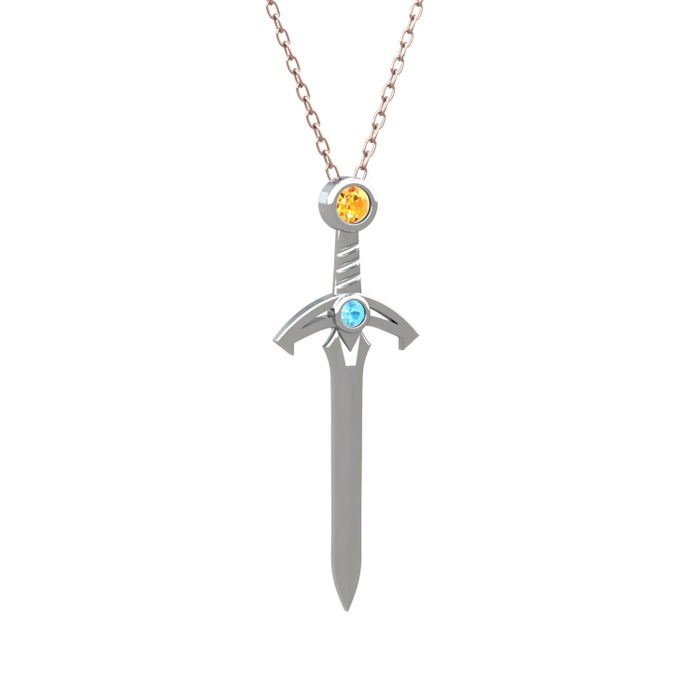Sitrin ve akuamarin 925 ayar gümüş kolye (40 cm gümüş rolo zincir)