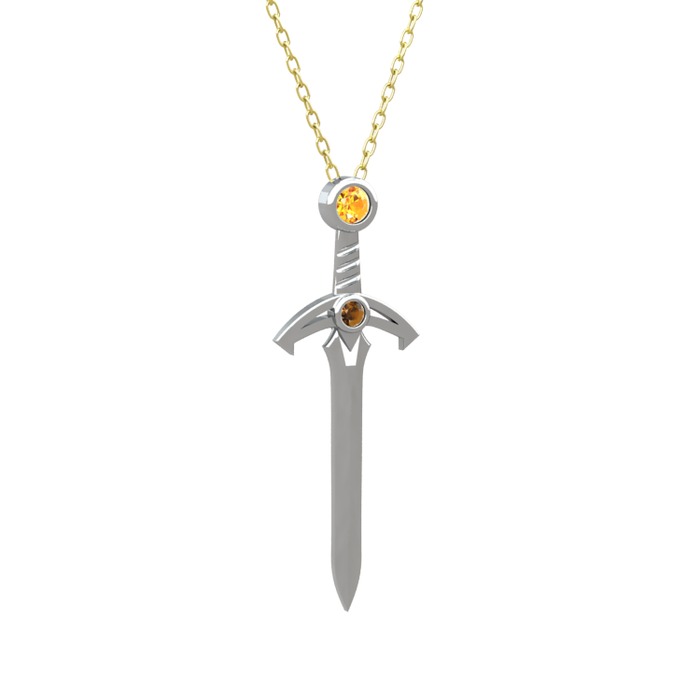 Sitrin ve dumanlı kuvars 18 ayar beyaz altın kolye (40 cm altın rolo zincir)