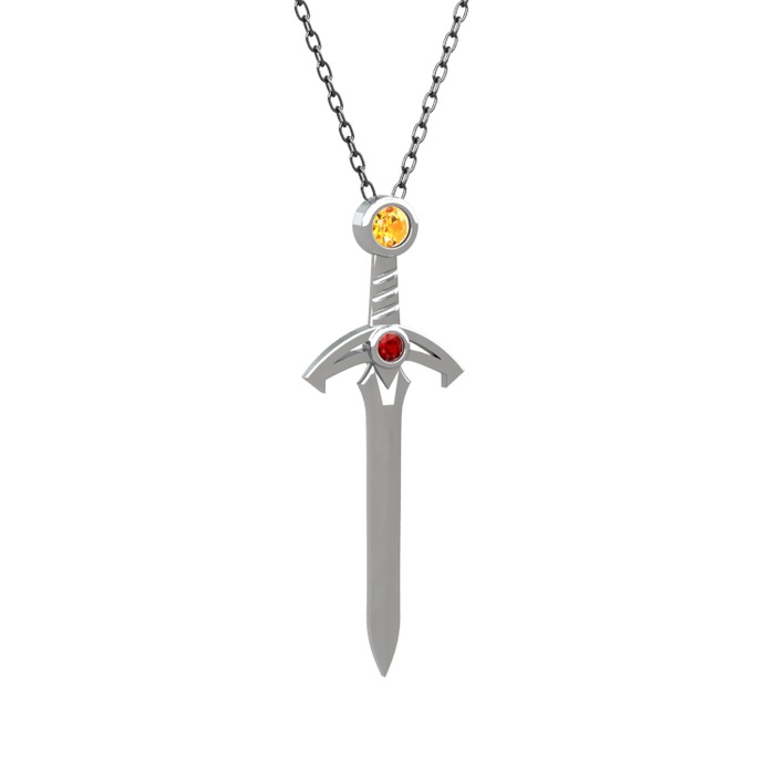 Sitrin ve garnet 8 ayar beyaz altın kolye (40 cm gümüş rolo zincir)