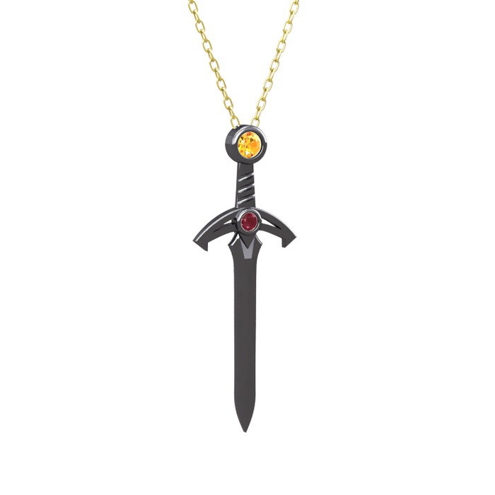 Sitrin ve kök yakut 925 ayar siyah rodyum kaplama gümüş kolye (40 cm gümüş rolo zincir)