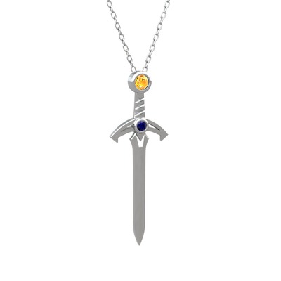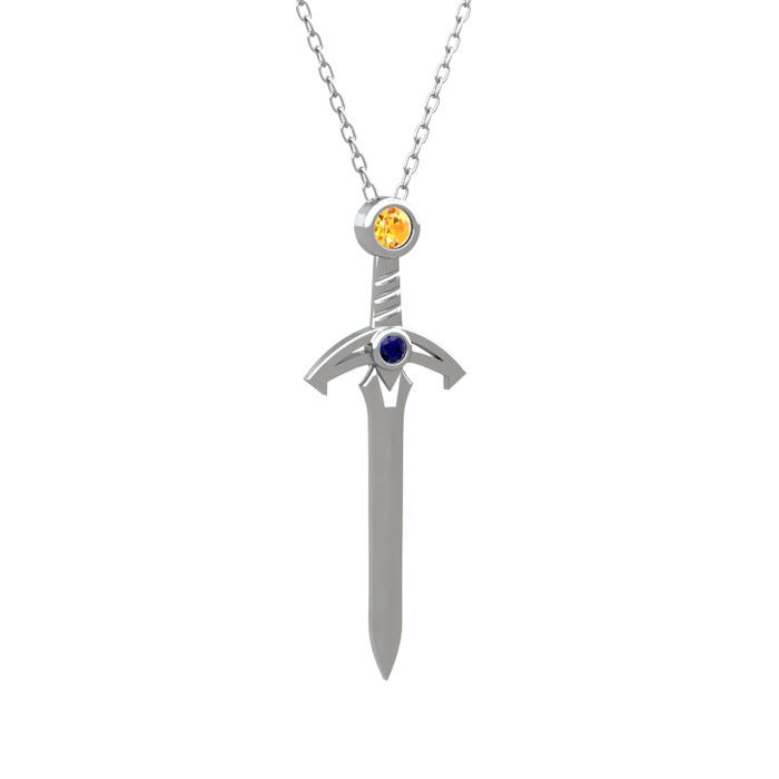 Sitrin ve lab safir 925 ayar gümüş kolye (40 cm beyaz altın rolo zincir)