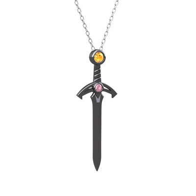 Sitrin ve pembe kuvars 925 ayar siyah rodyum kaplama gümüş kolye (40 cm gümüş rolo zincir)