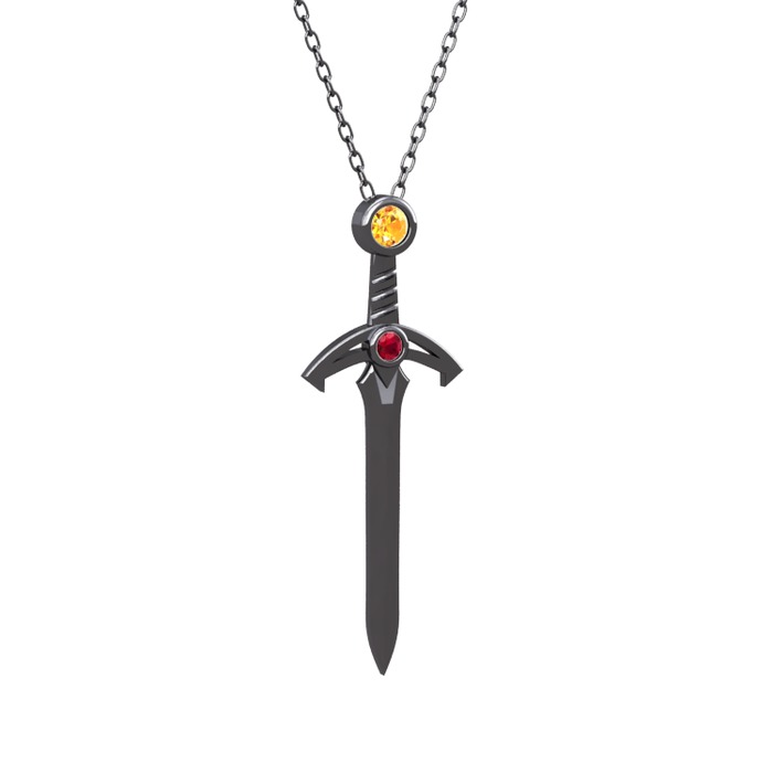 Sitrin ve rodolit garnet 925 ayar siyah rodyum kaplama gümüş kolye (40 cm gümüş rolo zincir)