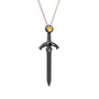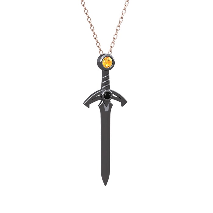 Sitrin ve siyah zirkon 925 ayar siyah rodyum kaplama gümüş kolye (40 cm rose altın rolo zincir)