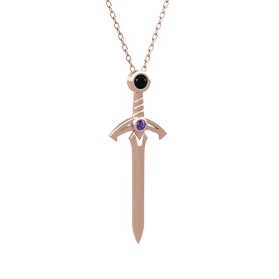 Siyah zirkon ve ametist 8 ayar rose altın kolye (40 cm rose altın rolo zincir)