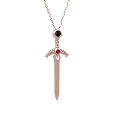 Siyah zirkon ve garnet 14 ayar rose altın kolye (40 cm rose altın rolo zincir)