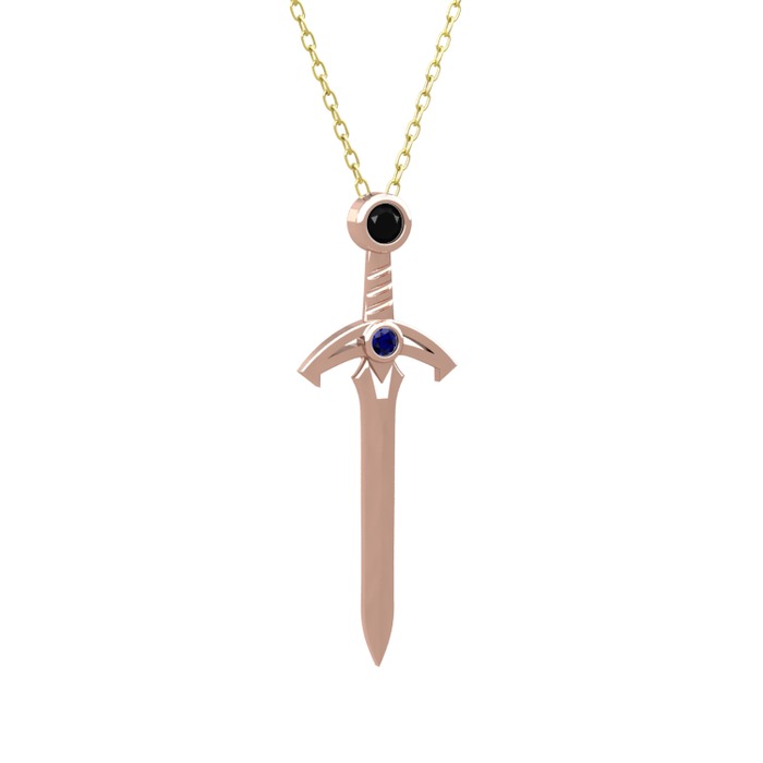 Siyah zirkon ve lab safir 18 ayar rose altın kolye (40 cm altın rolo zincir)