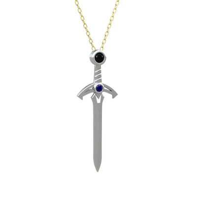 Siyah zirkon ve lab safir 8 ayar beyaz altın kolye (40 cm gümüş rolo zincir)