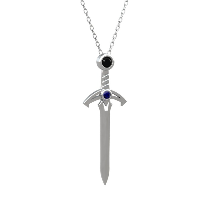 Siyah zirkon ve lab safir 925 ayar gümüş kolye (40 cm beyaz altın rolo zincir)