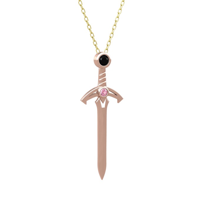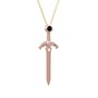 Siyah zirkon ve pembe kuvars 14 ayar rose altın kolye (40 cm gümüş rolo zincir)