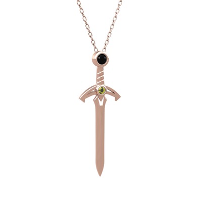 Siyah zirkon ve peridot 14 ayar rose altın kolye (40 cm rose altın rolo zincir)