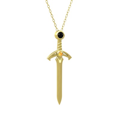 Siyah zirkon ve sitrin 8 ayar altın kolye (40 cm gümüş rolo zincir)