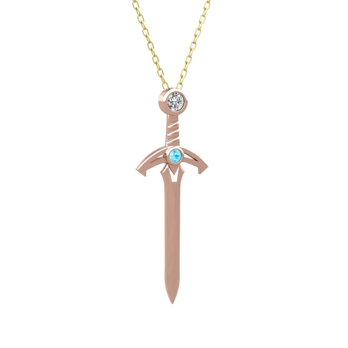 Swarovski ve akuamarin 8 ayar rose altın kolye (40 cm altın rolo zincir)
