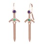 Ametist ve kök zümrüt 14 ayar rose altın küpe