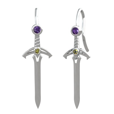 Ametist ve peridot 14 ayar beyaz altın küpe