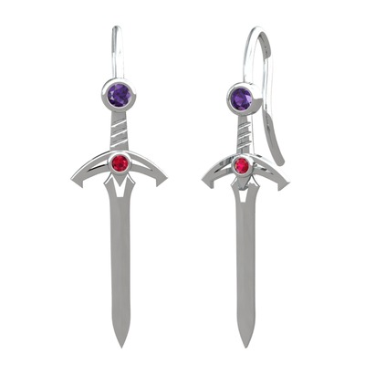 Ametist ve rodolit garnet 8 ayar beyaz altın küpe