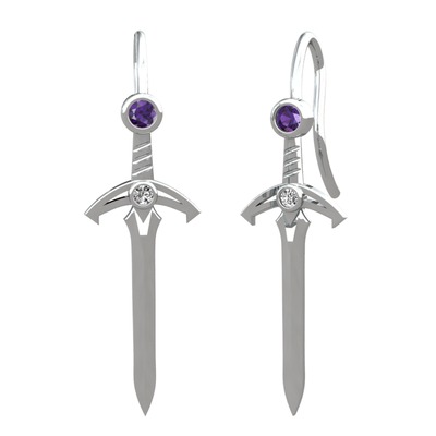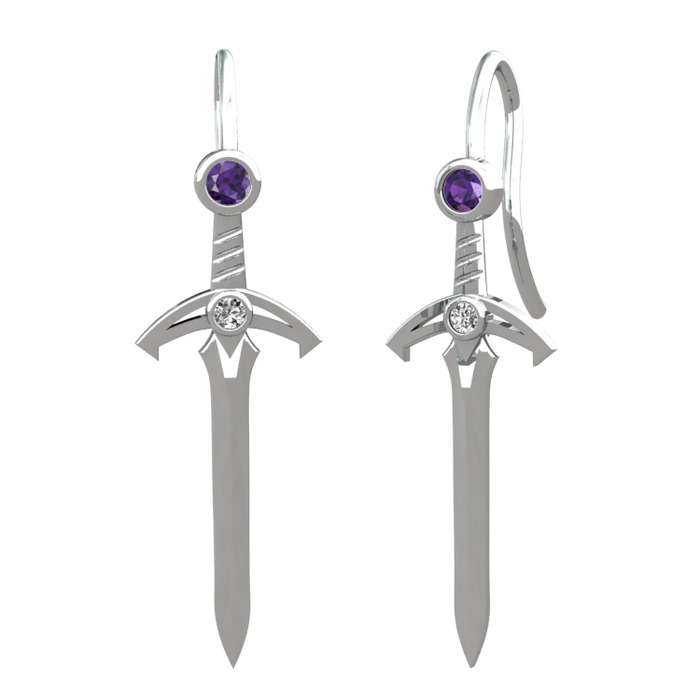 Ametist ve swarovski 8 ayar beyaz altın küpe