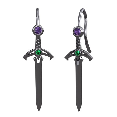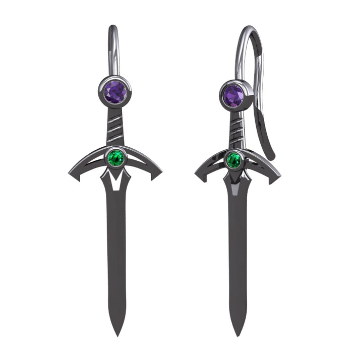 Ametist ve yeşil kuvars 925 ayar siyah rodyum kaplama gümüş küpe