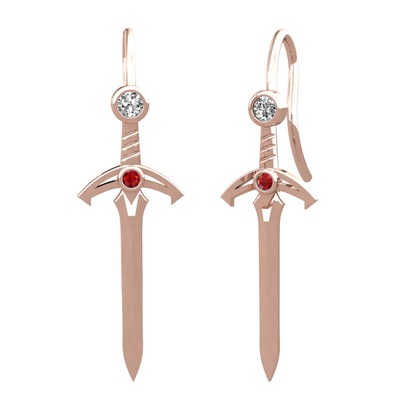 Beyaz zirkon ve garnet 925 ayar rose altın kaplama gümüş küpe