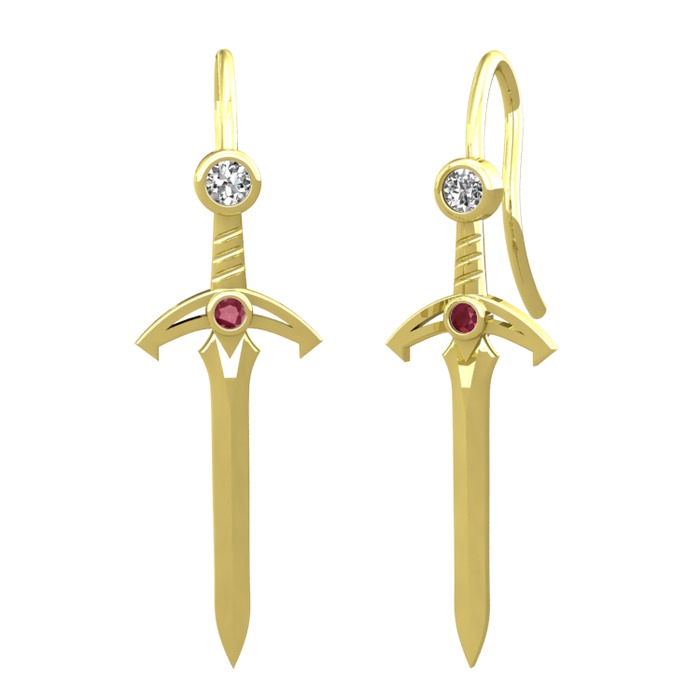 Beyaz zirkon ve kök yakut 8 ayar altın küpe