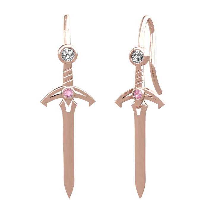 Beyaz zirkon ve pembe kuvars 8 ayar rose altın küpe
