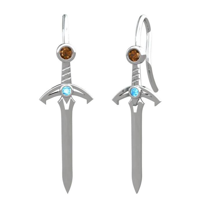 Dumanlı kuvars ve akuamarin 925 ayar gümüş küpe