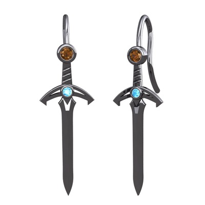 Dumanlı kuvars ve akuamarin 925 ayar siyah rodyum kaplama gümüş küpe