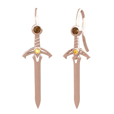 Dumanlı kuvars ve sitrin 14 ayar rose altın küpe