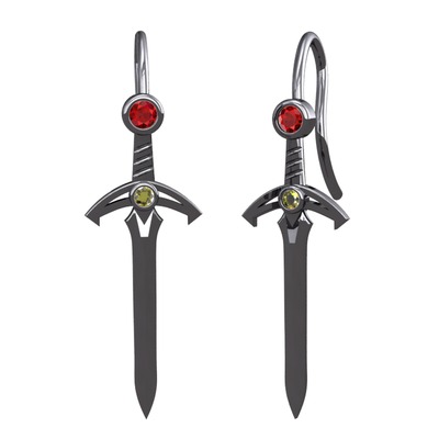 Garnet ve peridot 925 ayar siyah rodyum kaplama gümüş küpe