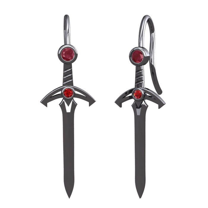 Kök yakut ve garnet 925 ayar siyah rodyum kaplama gümüş küpe