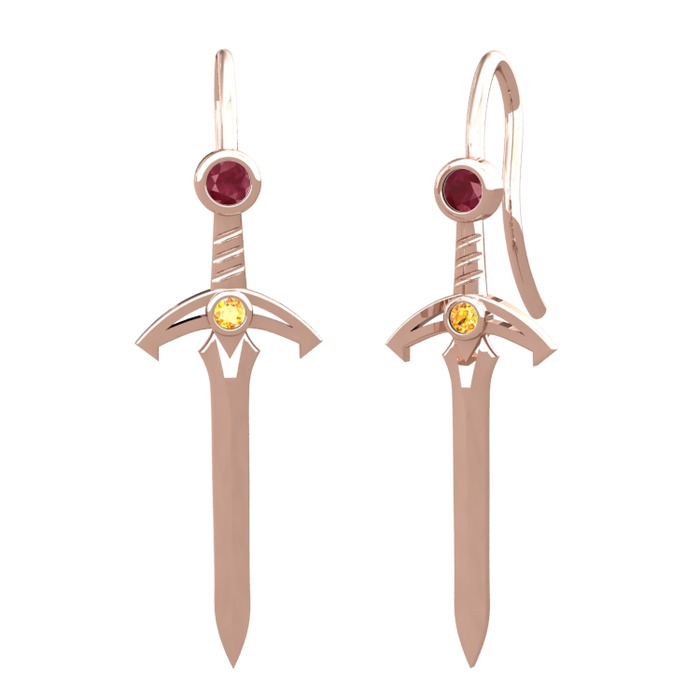 Kök yakut ve sitrin 14 ayar rose altın küpe