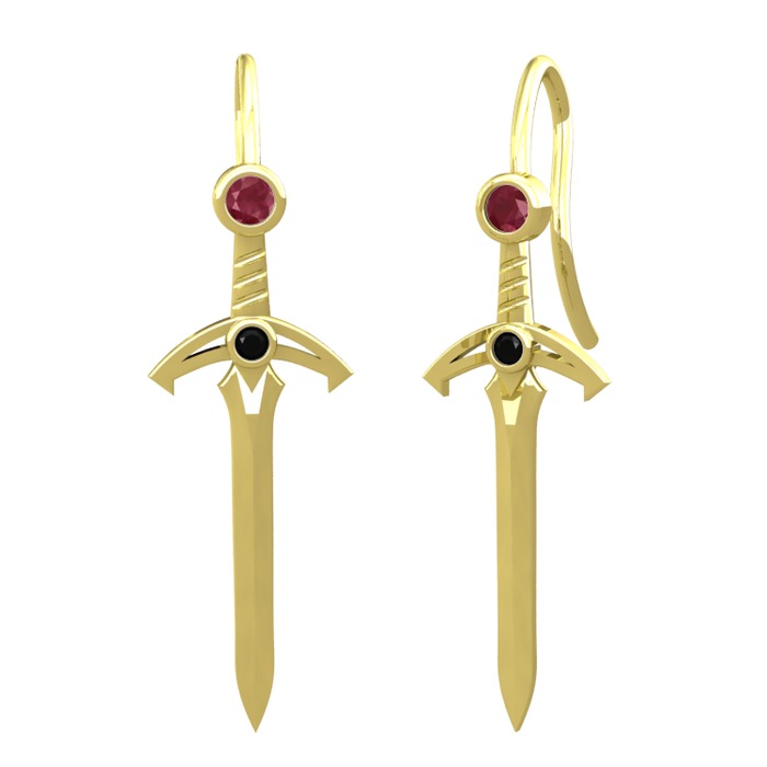 Kök yakut ve siyah zirkon 18 ayar altın küpe