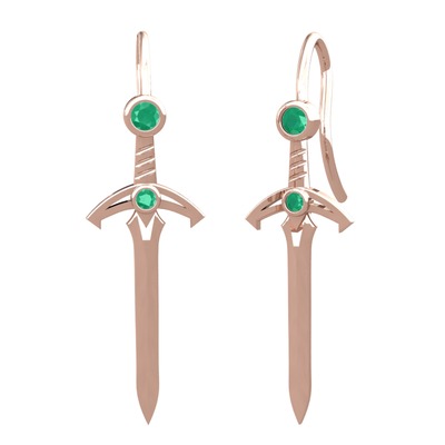 Kök zümrüt 18 ayar rose altın küpe