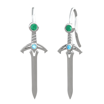 Kök zümrüt ve akuamarin 925 ayar gümüş küpe