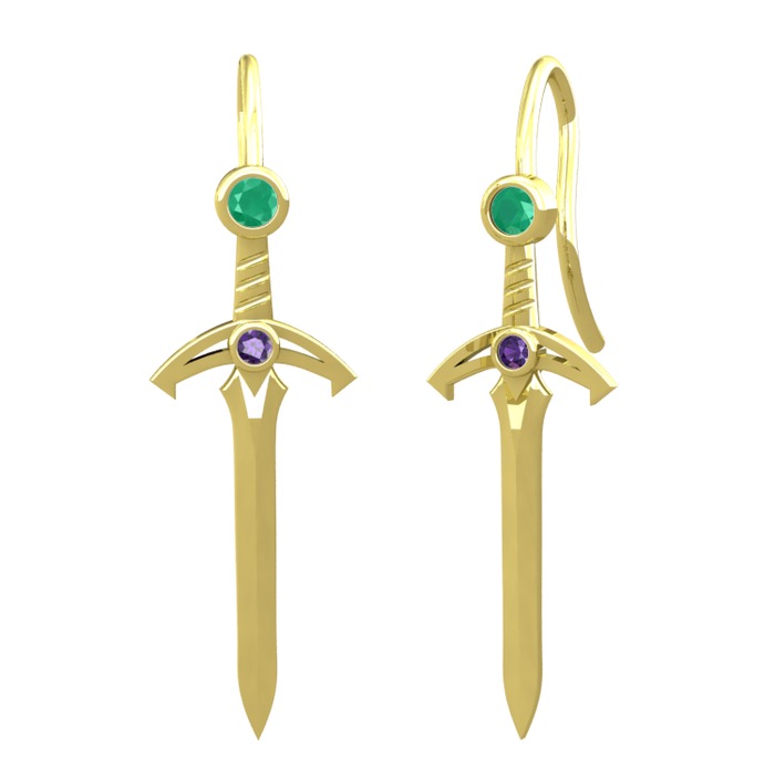 Kök zümrüt ve ametist 925 ayar altın kaplama gümüş küpe