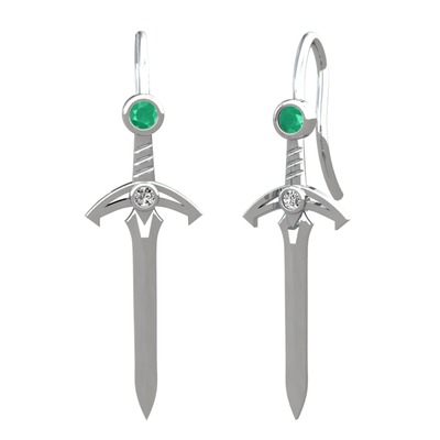 Kök zümrüt ve beyaz zirkon 14 ayar beyaz altın küpe
