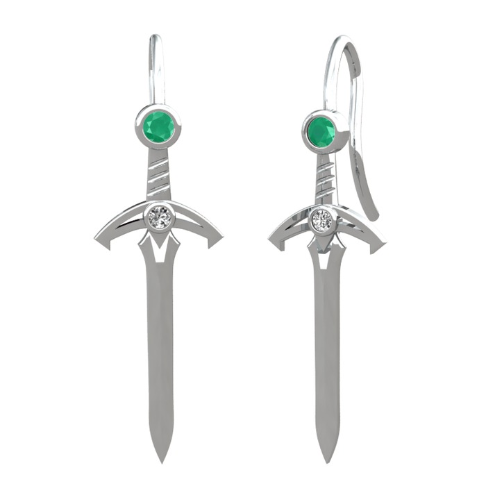 Kök zümrüt ve beyaz zirkon 18 ayar beyaz altın küpe