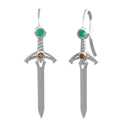 Kök zümrüt ve dumanlı kuvars 18 ayar beyaz altın küpe